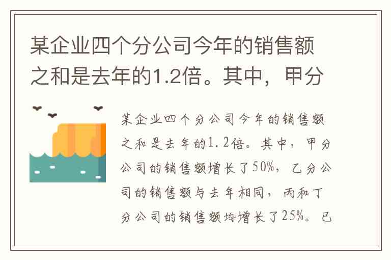 今年,甲、丙、丁的销售额分别增长了50%、25%、25%。我们可以分别计算这些分公司今年的销售额: