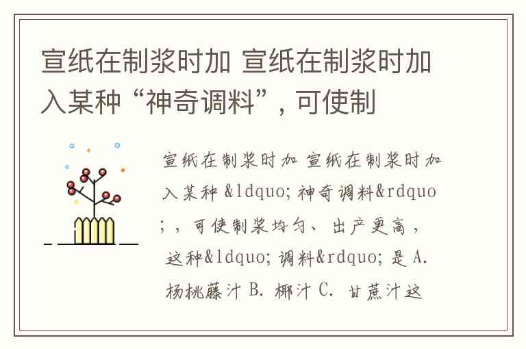 宣纸在制浆时加 宣纸在制浆时加入某种 “神奇调料” , 可使制浆均匀、出产更高 , 这种“调料”是 A. 杨桃藤汁 B. 椰汁 C. 甘蔗汁