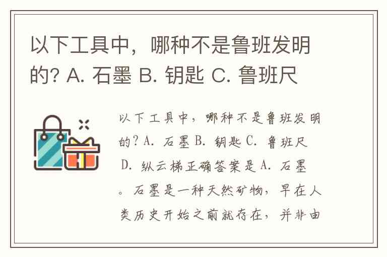 石墨是一种天然矿物,早在人类历史开始之前就存在,并非由鲁班发明。鲁班(公元前507年—公元前444年)是中国古代著名的工匠、发明家,他确实发明了很多工具和技术,其中包括钥匙、鲁班尺(用于测量的工具)、和纵云梯(一种攻城器械),但石墨并不在他的发明范围内。