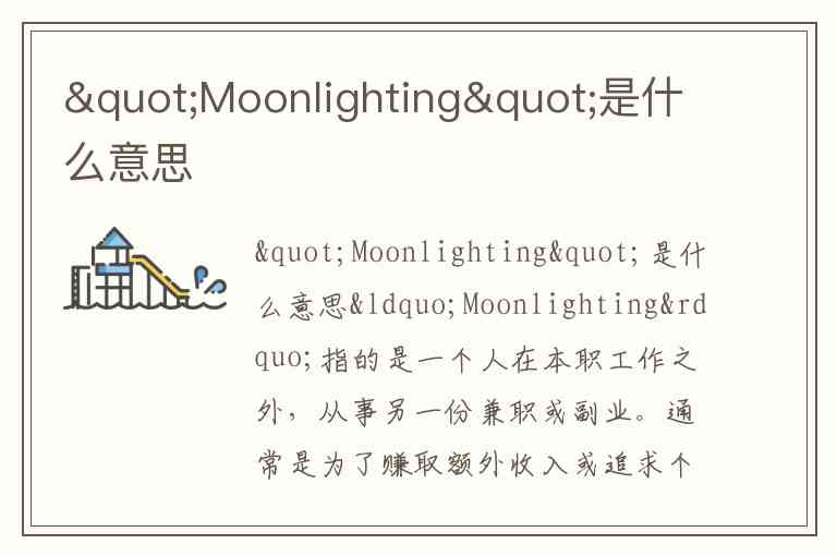 “Moonlighting”指的是一个人在本职工作之外,从事另一份兼职或副业。通常是为了赚取额外收入或追求个人兴趣。这个词字面上的意思是“在月光下工作”,寓意着在正常工作之外的“夜间工作”。