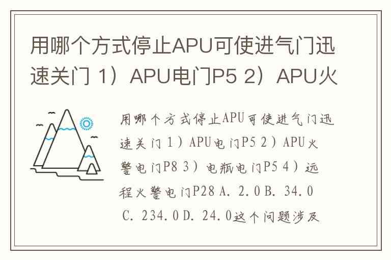 这个问题涉及航空器的APU(辅助动力装置)和进气门的控制机制,特别是如何迅速关闭进气门。