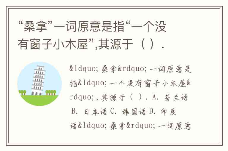 “桑拿”一词原意是指“一个没有窗子小木屋”,其源于( ). A. 芬兰语 B. 日本语 C. 韩国语 D. 印度语