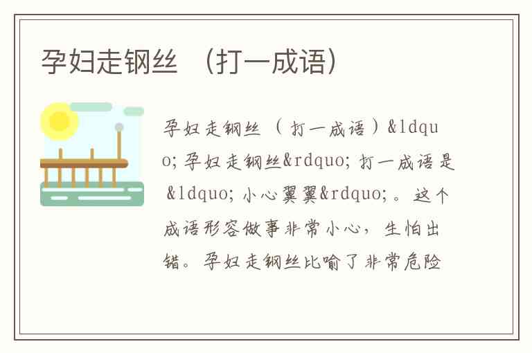这个成语形容做事非常小心,生怕出错。孕妇走钢丝比喻了非常危险且需要小心谨慎的情境,正好与“翼翼”相契合。