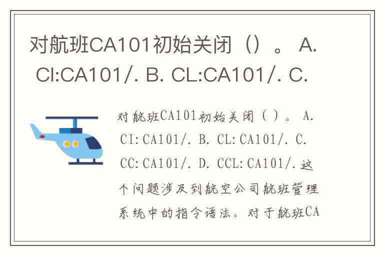 对航班CA101初始关闭()。 A. CI:CA101/. B. CL:CA101/. C. CC:CA101/. D. CCL:CA101/.