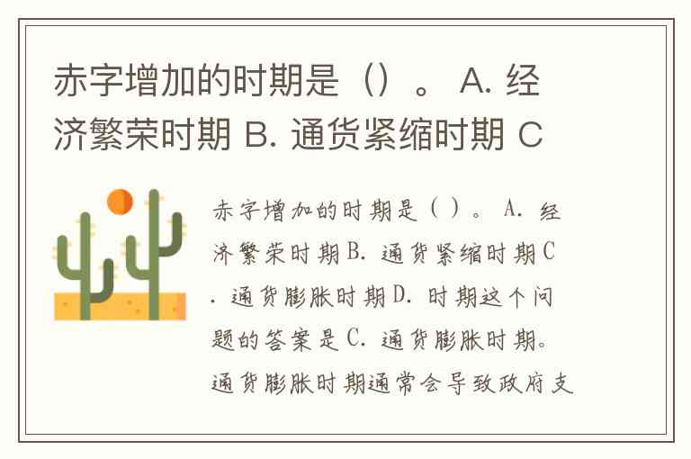 赤字增加的时期是()。 A. 经济繁荣时期 B. 通货紧缩时期 C. 通货膨胀时期 D. 时期