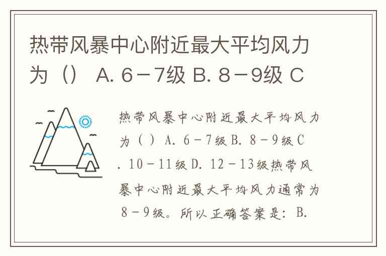 热带风暴中心附近最大平均风力为() A. 6-7级 B. 8-9级 C. 10-11级 D. 12-13级