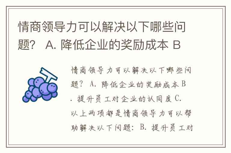 情商领导力可以解决以下哪些问题? A. 降低企业的奖励成本 B. 提升员工对企业的认同度 C. 以上两项都是