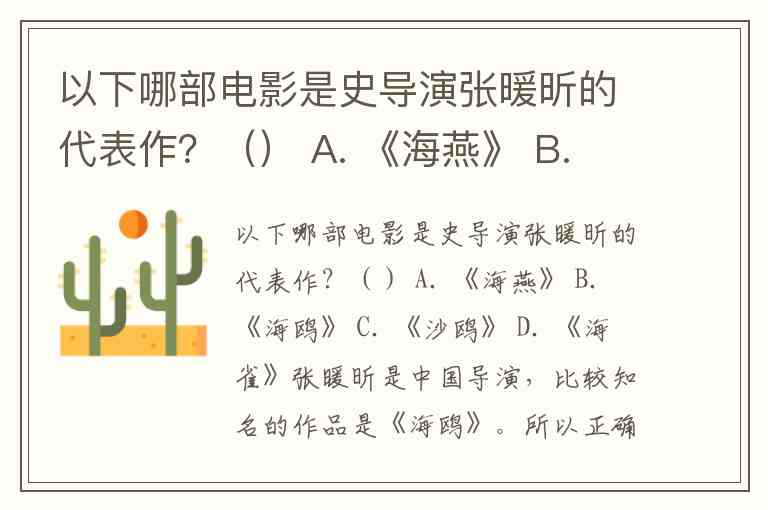 以下哪部电影是史导演张暖昕的代表作?() A. 《海燕》 B. 《海鸥》 C. 《沙鸥》 D. 《海雀》