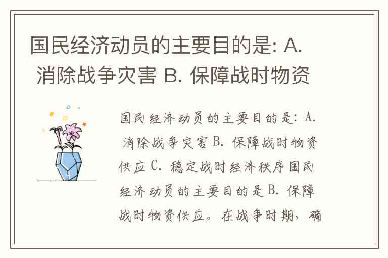 国民经济动员的主要目的是: A. 消除战争灾害 B. 保障战时物资供应 C. 稳定战时经济秩序