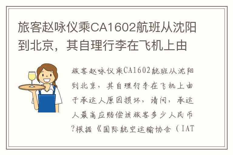 旅客赵咏仪乘CA1602航班从沈阳到北京,其自理行李在飞机上由于承运人原因损坏,请问,承运人最高应赔偿该旅客多少人民币?