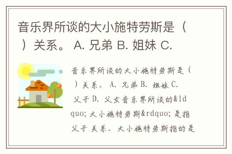 音乐界所谈的大小施特劳斯是( )关系。 A. 兄弟 B. 姐妹 C. 父子 D. 父女
