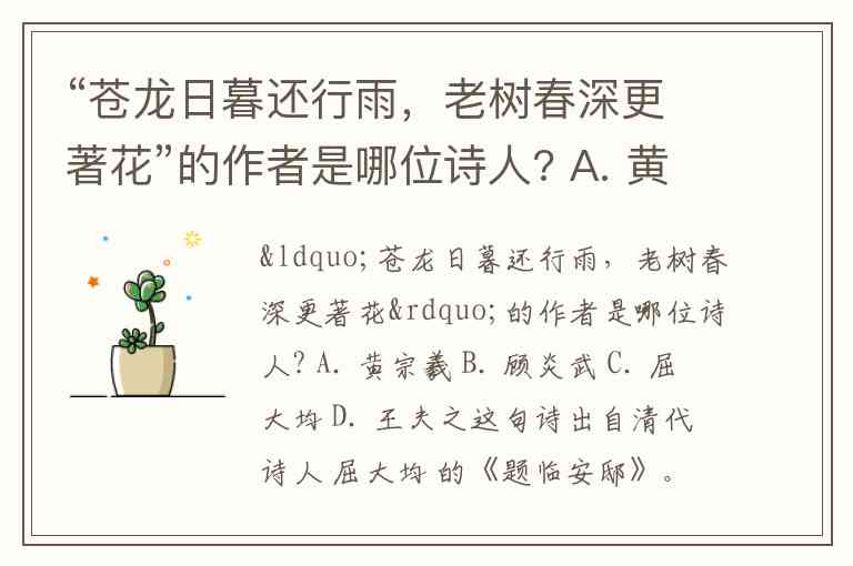 “苍龙日暮还行雨,老树春深更著花”的作者是哪位诗人? A. 黄宗羲 B. 顾炎武 C. 屈大均 D. 王夫之