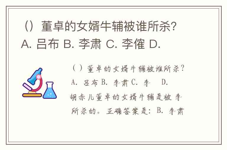 ()董卓的女婿牛辅被谁所杀? A. 吕布 B. 李肃 C. 李傕 D. 胡赤儿