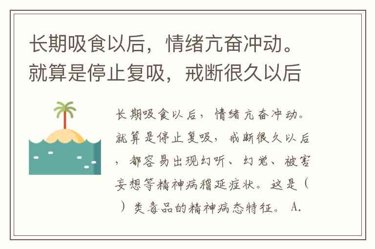 长期吸食以后,情绪亢奋冲动。就算是停止复吸,戒断很久以后,都容易出现幻听、幻觉、被害妄想等精神病稽延症状。这是( )类毒品的精神病态特征。 A. 类 B. 鸦片类 C. 类 D. 类