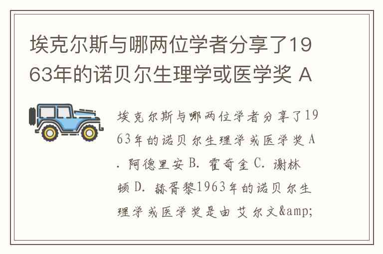 埃克尔斯与哪两位学者分享了1963年的诺贝尔生理学或医学奖 A. 阿德里安 B. 霍奇金 C. 谢林顿 D. 赫胥黎
