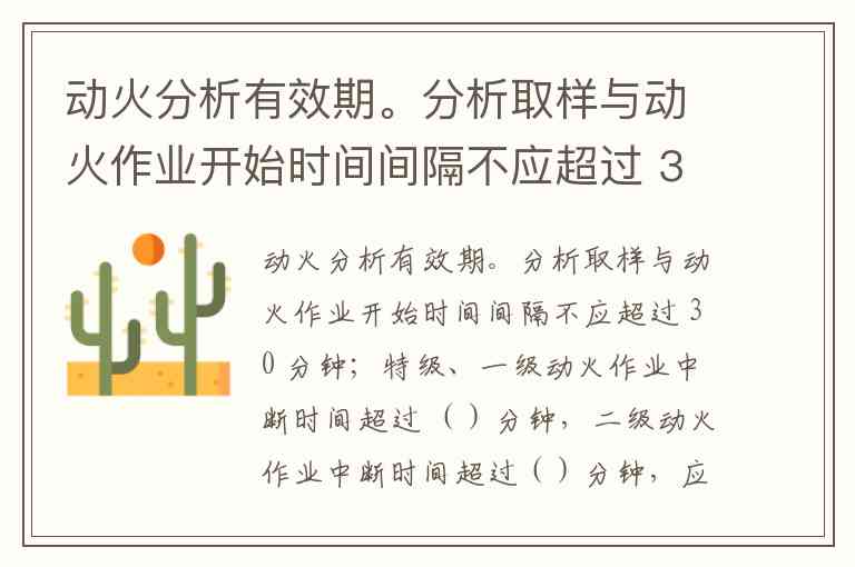 根据你提供的题目内容,动火作业中断后需要重新进行气体分析的时间限制,应该符合以下规定: