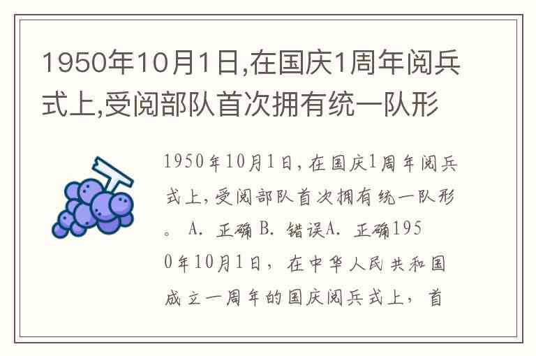 1950年10月1日,在国庆1周年阅兵式上,受阅部队首次拥有统一队形。 A. 正确 B. 错误