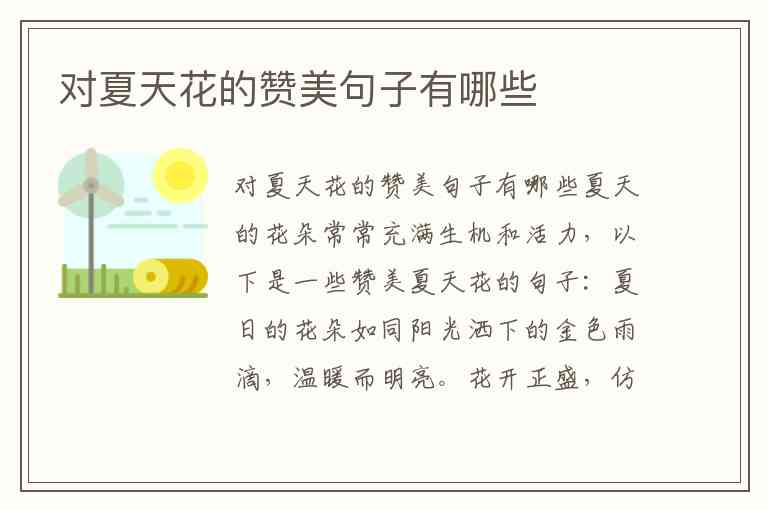 夏天的花朵常常充满生机和活力,以下是一些赞美夏天花的句子: