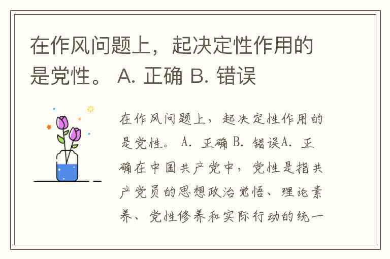 在作风问题上,起决定性作用的是党性。 A. 正确 B. 错误