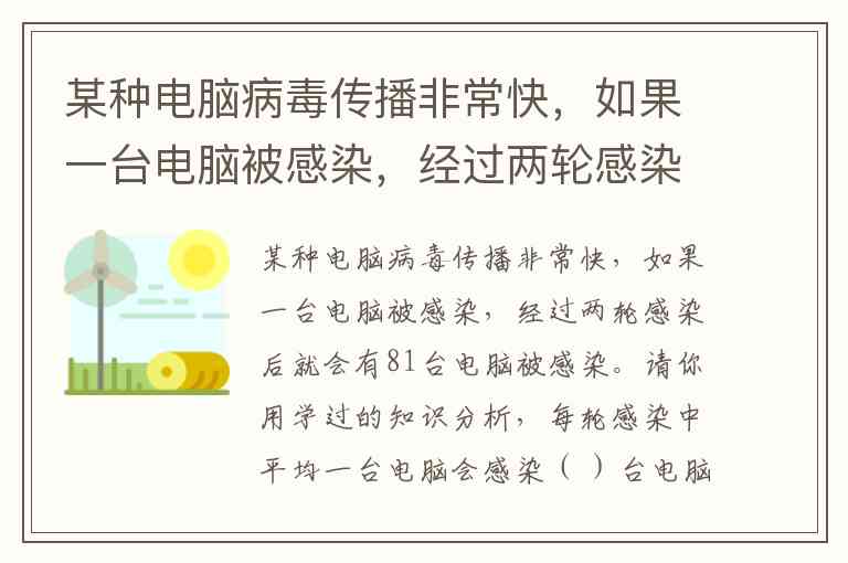 根据题目描述,病毒传播非常快,经过两轮感染后会有81台电脑被感染。我们可以通过推理和简单的数学计算来分析每轮感染中,平均一台电脑会感染多少台电脑。