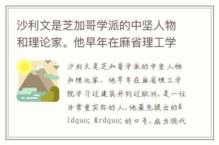 你提到的“沙利文”应该是指美国著名建筑师路易·沙利文(Louis Sullivan)。他是芝加哥学派的重要人物,被誉为“摩天大楼之父”。他早年确实在麻省理工学院学习建筑,也曾有过欧洲的学习和旅行经历。