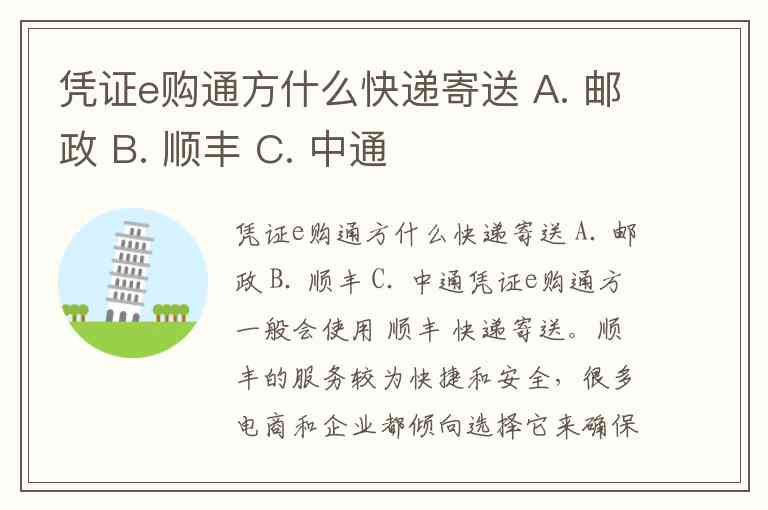 凭证e购通方什么快递寄送 A. 邮政 B. 顺丰 C. 中通