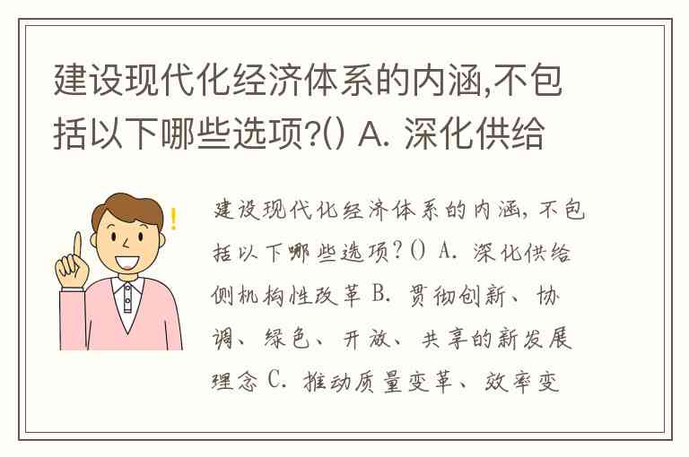 建设现代化经济体系的内涵通常包括推动高质量发展和深化改革等内容,着重在供给侧改革、创新驱动发展、绿色可持续发展、以及更高效的资源配置。