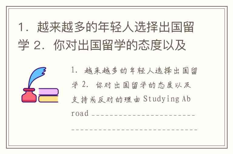 1.越来越多的年轻人选择出国留学 2.你对出国留学的态度以及支持或反对的理由 Studying Abroad ___________________________________________________________________________________________ ___________________________________________________________________________________________ ___________________________________________________________________________________________