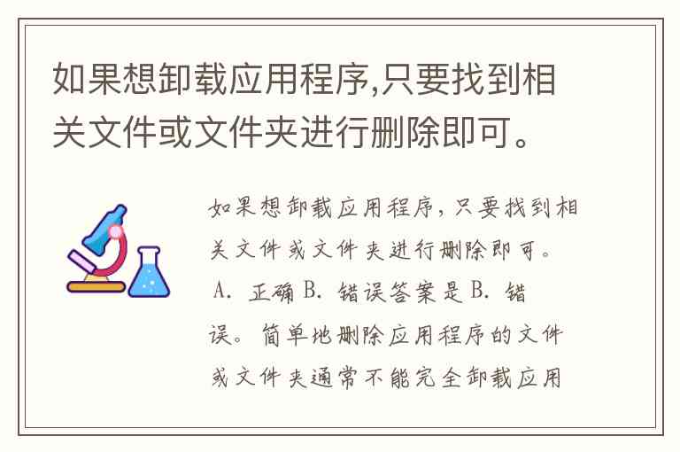 如果想卸载应用程序,只要找到相关文件或文件夹进行删除即可。 A. 正确 B. 错误