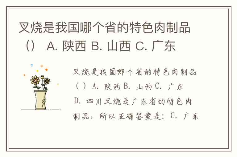 叉烧是我国哪个省的特色肉制品() A. 陕西 B. 山西 C. 广东 D. 四川