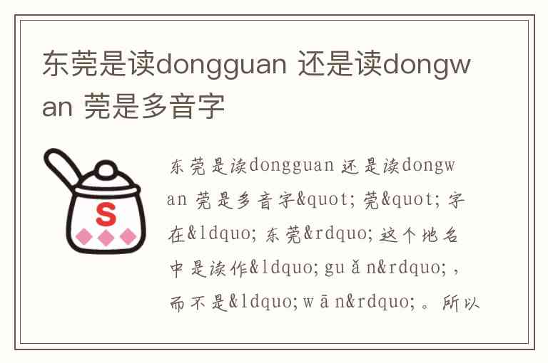 东莞是读dongguan 还是读dongwan 莞是多音字