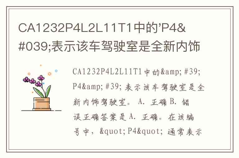 CA1232P4L2L11T1中的'P4'表示该车驾驶室是全新内饰驾驶室。 A. 正确 B. 错误