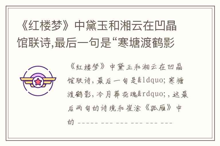 这道题目考察的是诗境的相似性。《红楼梦》中黛玉和湘云联诗的最后两句“寒塘渡鹤影,冷月葬花魂”充满了孤寂、凄凉的意境,而崔涂的《孤雁》同样描绘了孤独、冷清的景象。