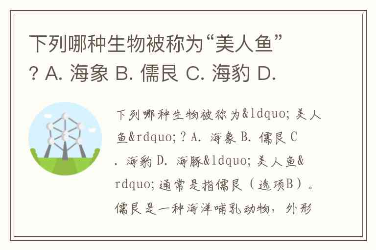 下列哪种生物被称为“美人鱼”? A. 海象 B. 儒艮 C. 海豹 D. 海豚
