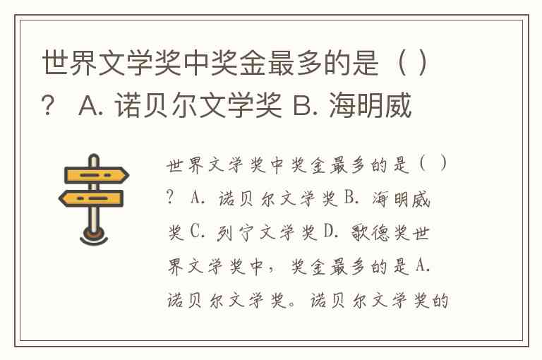 世界文学奖中奖金最多的是( )? A. 诺贝尔文学奖 B. 海明威奖 C. 列宁文学奖 D. 歌德奖