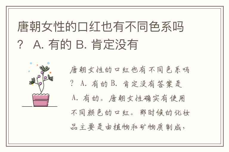 唐朝女性的口红也有不同色系吗? A. 有的 B. 肯定没有