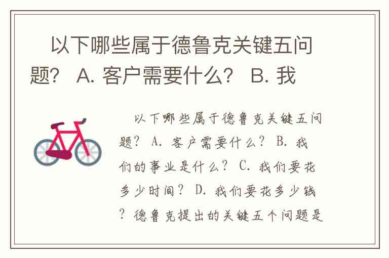 以下哪些属于德鲁克关键五问题? A. 客户需要什么? B. 我们的事业是什么? C. 我们要花多少时间? D. 我们要花多少钱?