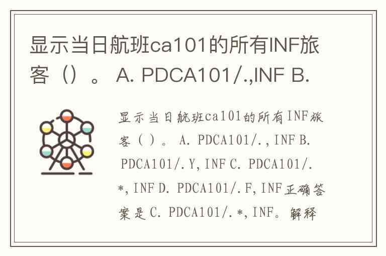 显示当日航班ca101的所有INF旅客()。 A. PDCA101/.,INF B. PDCA101/.Y,INF C. PDCA101/.*,INF D. PDCA101/.F,INF