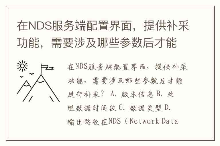 在NDS(Network Data Service)服务端配置界面,提供补采功能时,通常需要以下参数才能进行补采: