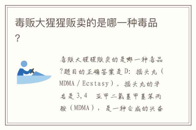 毒贩大猩猩贩卖的是哪一种毒品?