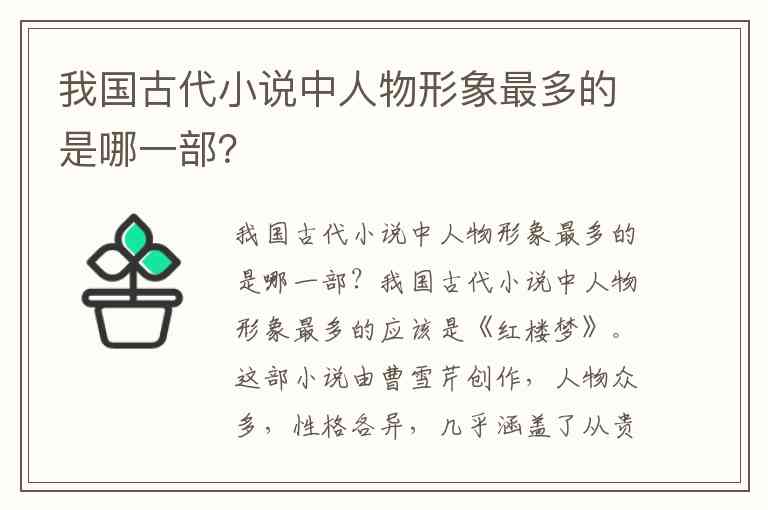 我国古代小说中人物形象最多的是哪一部?