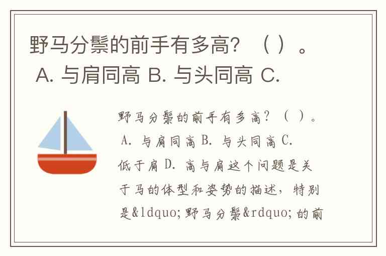 野马分鬃的前手有多高?( )。 A. 与肩同高 B. 与头同高 C. 低于肩 D. 高与肩