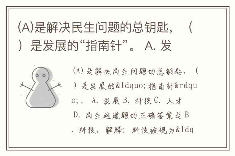 (A)是解决民生问题的总钥匙,()是发展的“指南针”。 A. 发展 B. 科技 C. 人才 D. 民生