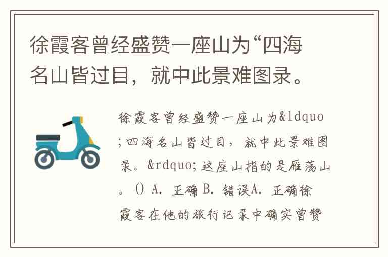 徐霞客曾经盛赞一座山为“四海名山皆过目,就中此景难图录。”这座山指的是雁荡山。() A. 正确 B. 错误