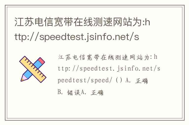 江苏电信宽带在线测速网站为:http://speedtest.jsinfo.net/speedtest/speed/ ( ) A. 正确 B. 错误