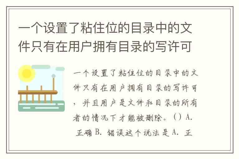一个设置了粘住位的目录中的文件只有在用户拥有目录的写许可,并且用户是文件和目录的所有者的情况下才能被删除。( ) A. 正确 B. 错误