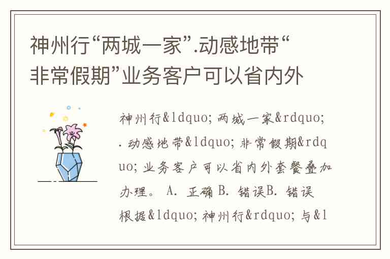 根据“神州行”与“动感地带”相关的套餐规定,通常这两种业务是无法在同一账户下叠加办理的,特别是套餐内容和政策上有区别。因此,关于“两城一家”与“非常假期”业务叠加办理的说法是错误的。