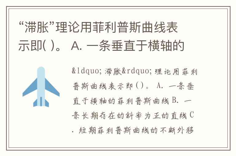 “滞胀”理论用菲利普斯曲线表示即( )。 A. 一条垂直于横轴的菲利普斯曲线 B. 一条长期存在的斜率为正的直线 C. 短期菲利普斯曲线的不断外移 D. 一条不规则曲线