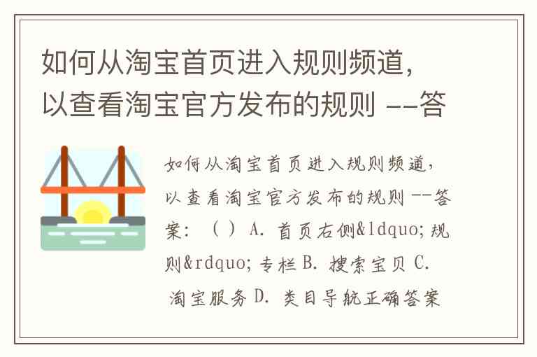 如何从淘宝首页进入规则频道,以查看淘宝官方发布的规则 --答案:() A. 首页右侧“规则”专栏 B. 搜索宝贝 C. 淘宝服务 D. 类目导航