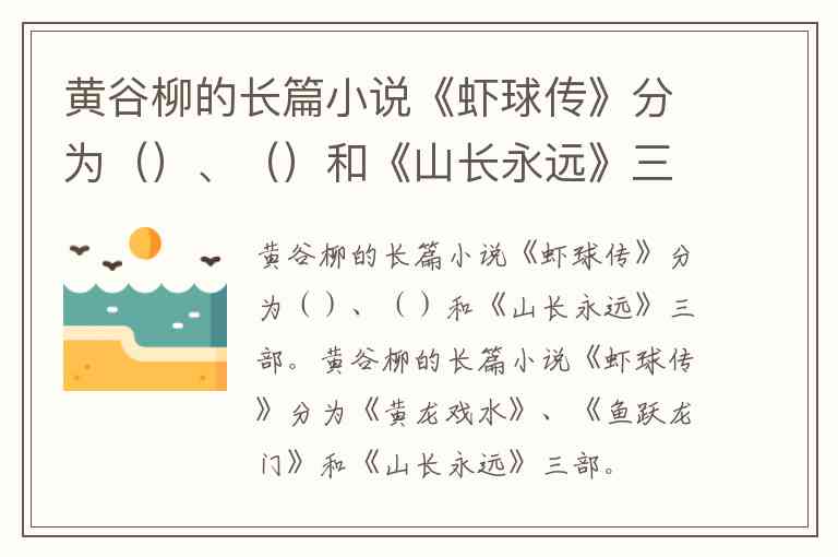 黄谷柳的长篇小说《虾球传》分为《黄龙戏水》、《鱼跃龙门》和《山长永远》三部。